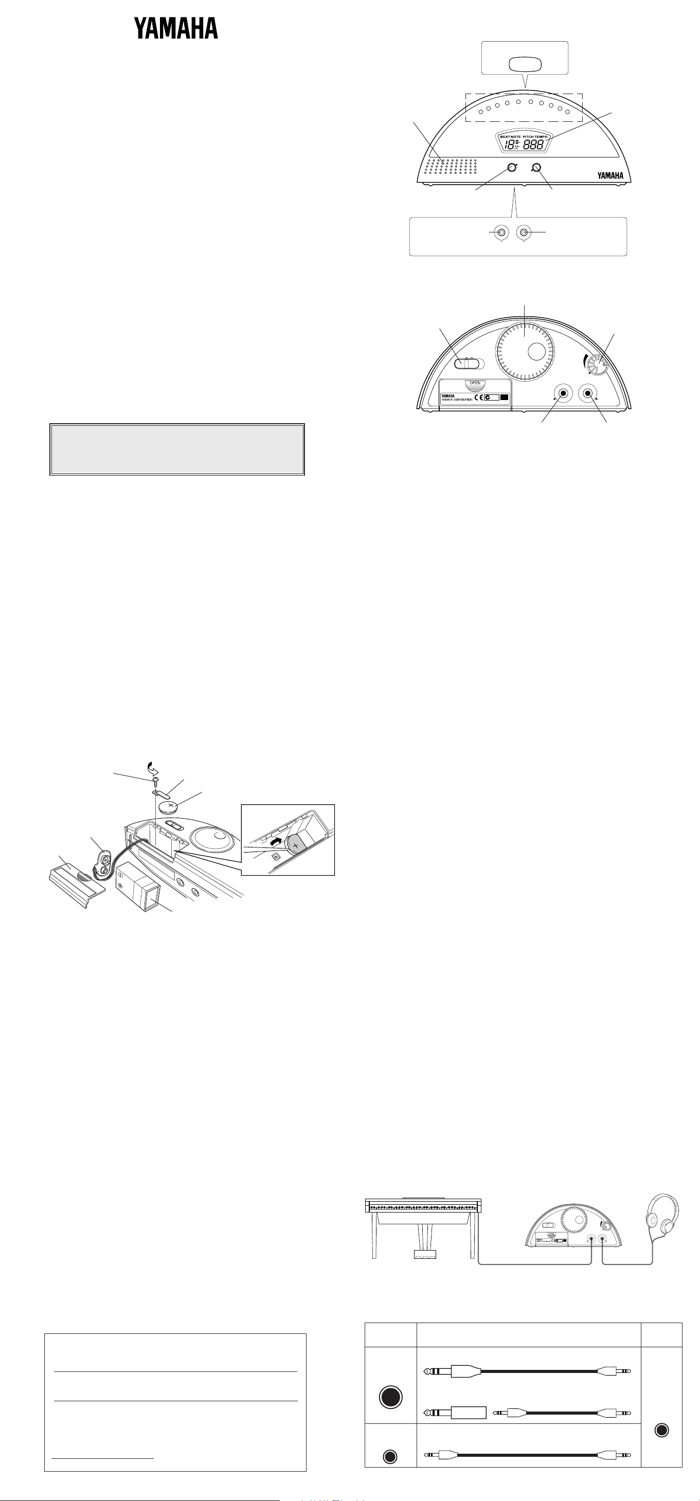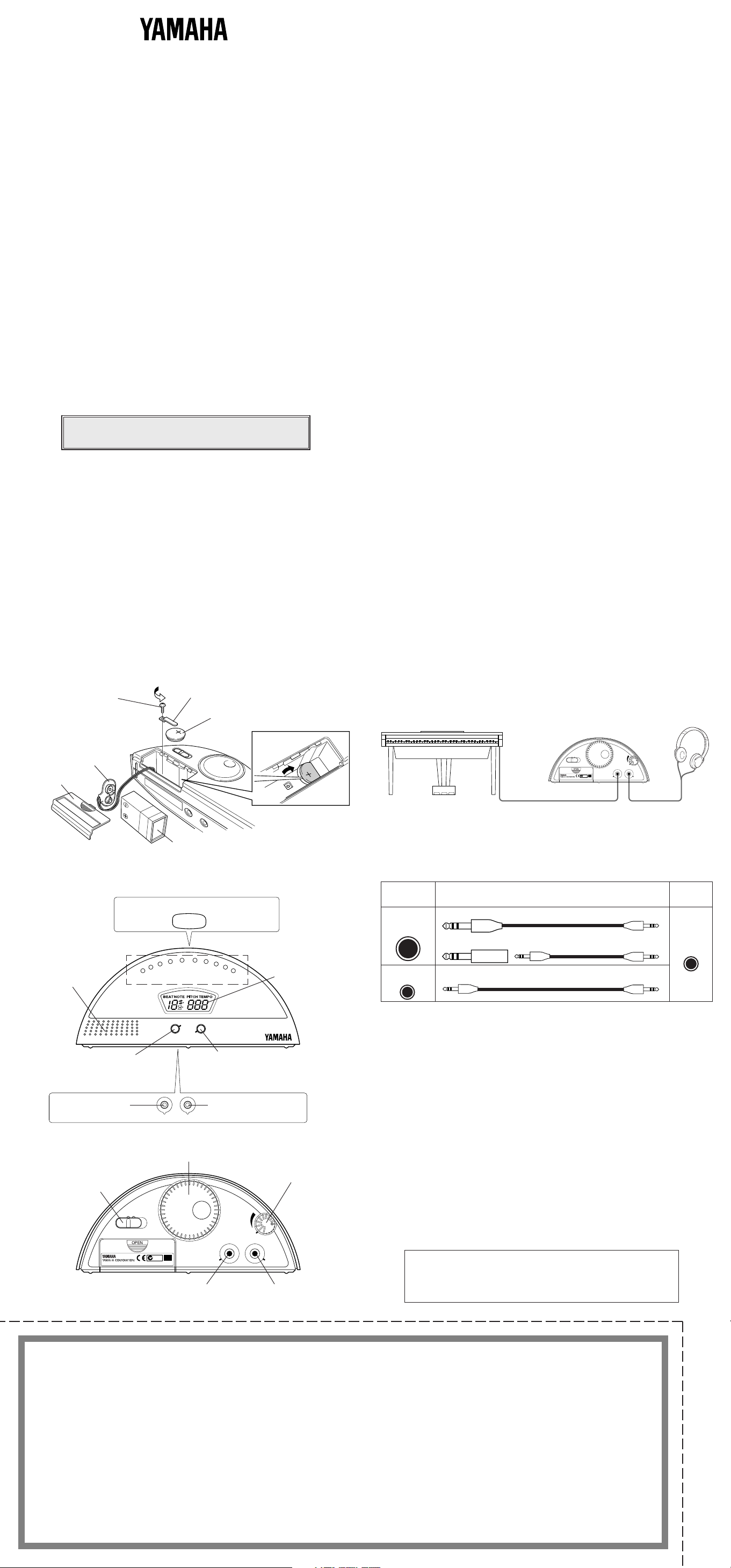 Thank you for purchasing the YAMAHA QT-2 Quartz Metronome.