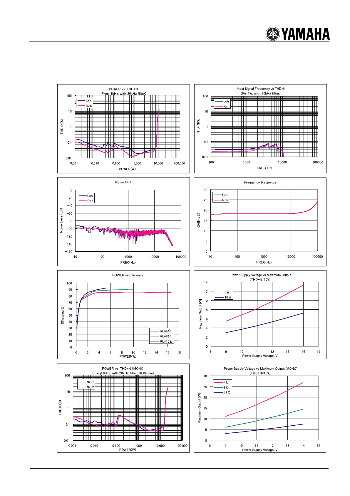 =8Ω)×2ch or 20W (RL=4Ω)×1ch can be configured