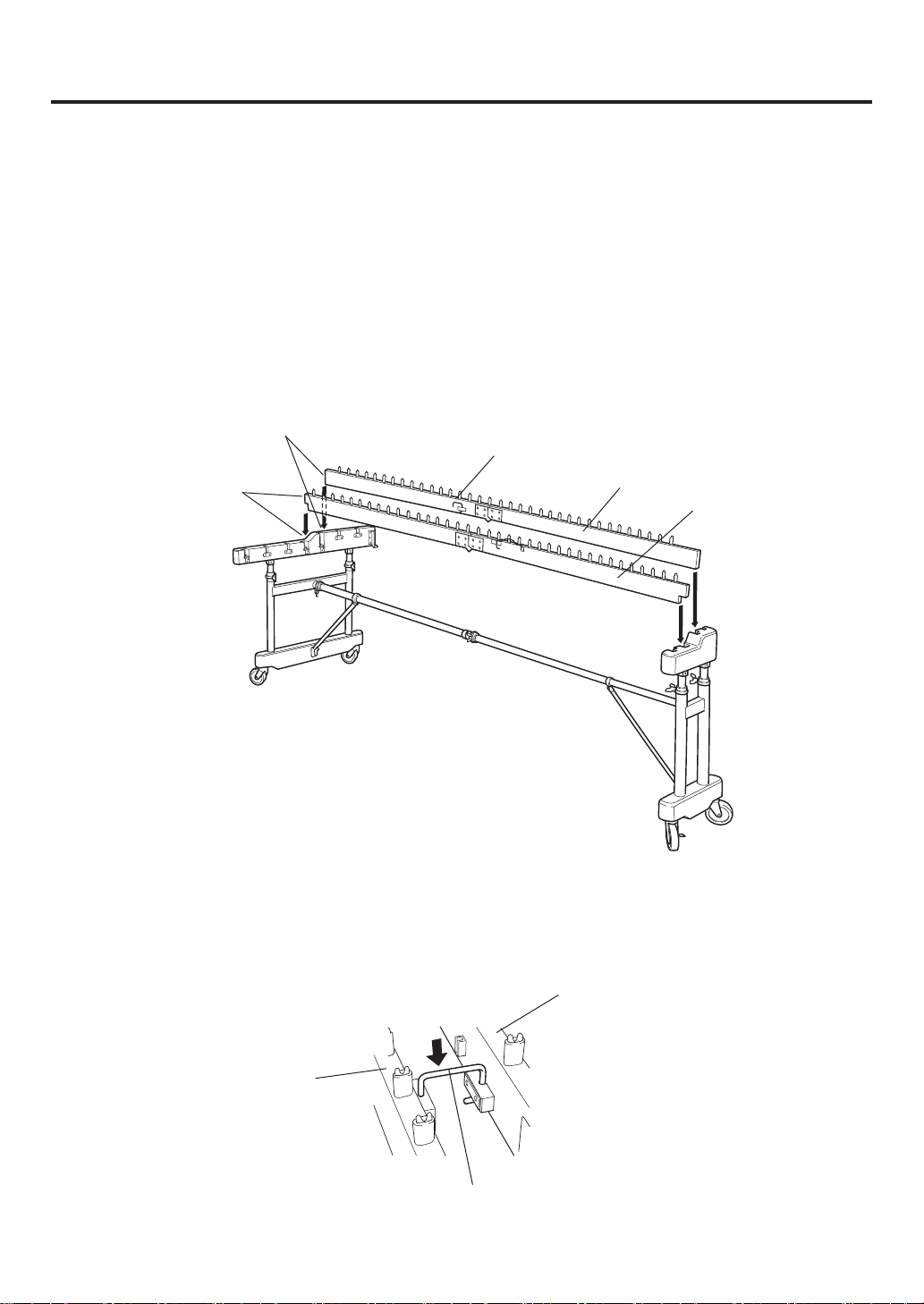 pension cords on the treble side securely with both hands, gently place the tone bars on the rails.