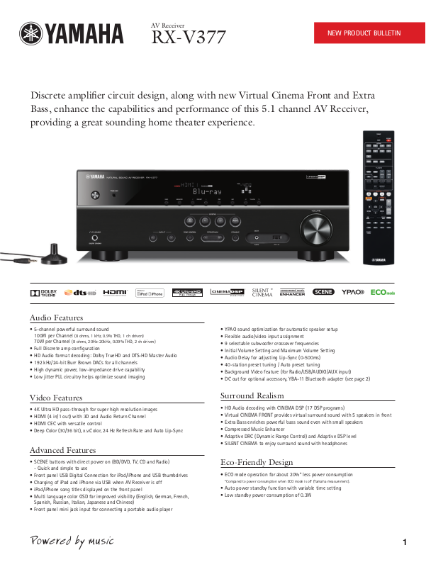 Bass, enhance the capabilities and performance of this 5.1 channel AV Receiver,