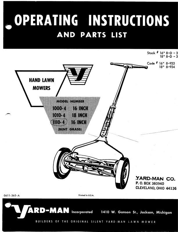 Yard-Man 1110-4, 1010-4, 1000-4 User Manual