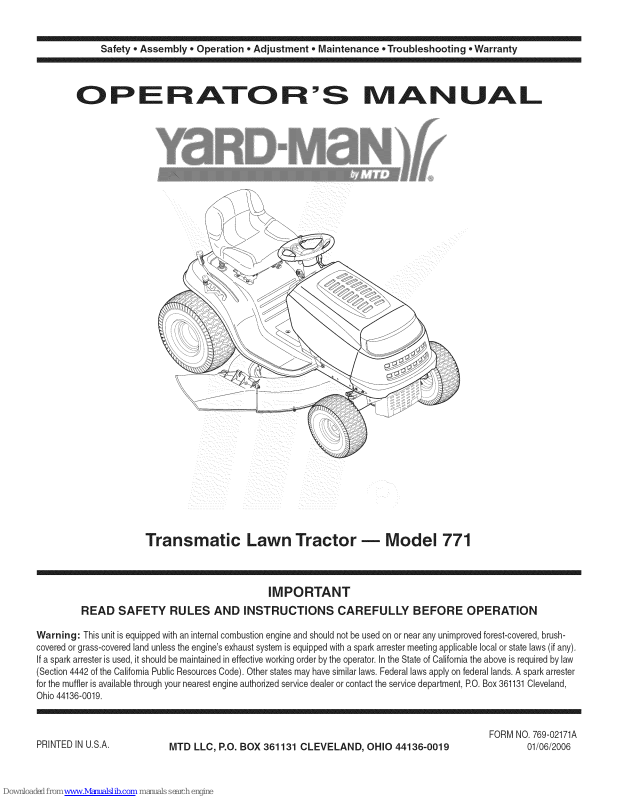 MTD LLC, P.O. BOX 361131 CLEVELAND, OHIO 44136=0019; Phone: 1=800=800=7310