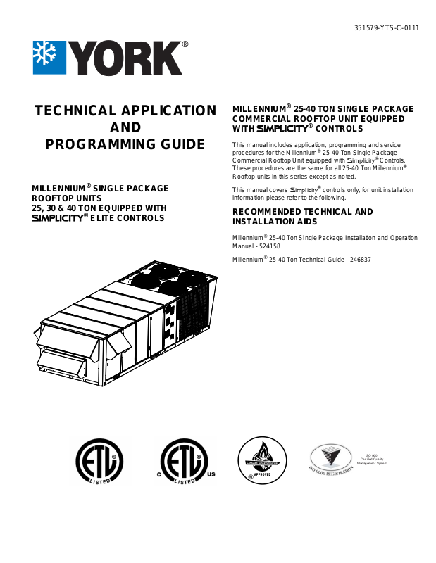 Millennium® 25-40 Ton Single Package Installation and Operation