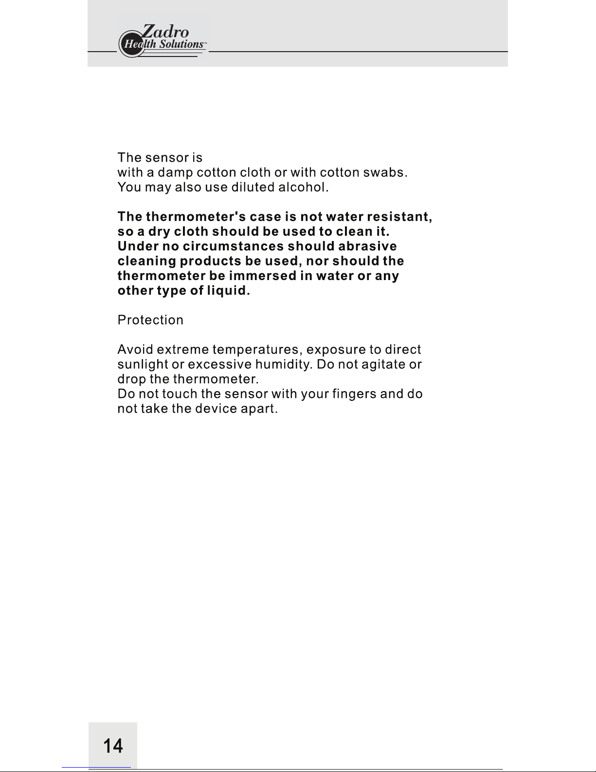 device. ONLY THE SENSOR TIP IS WATER RESISTANT, THE DEVICE