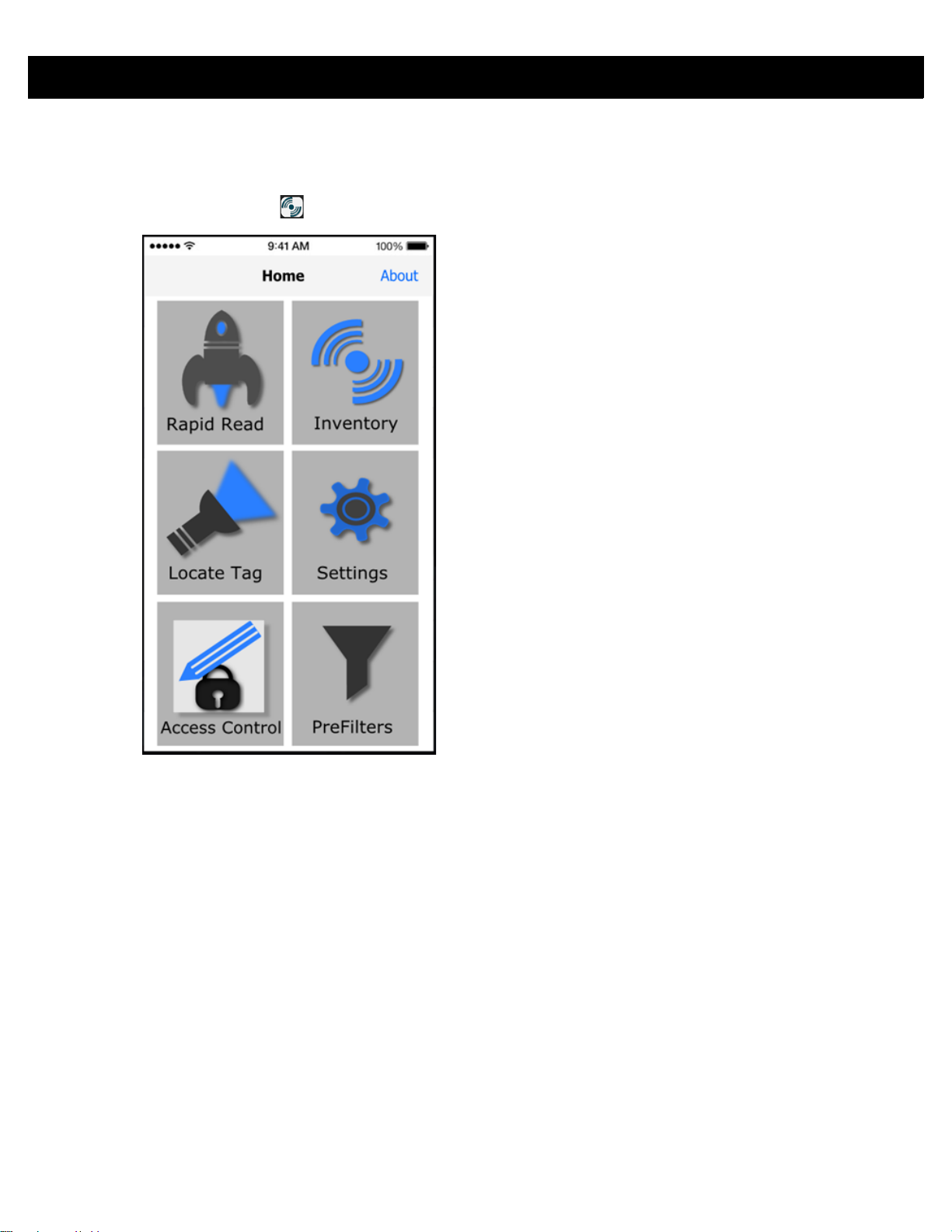 5. デバイス上の [Zebra Scanner for iOS] アイコン ( ) をタッチして、[Home] 画面を表示します