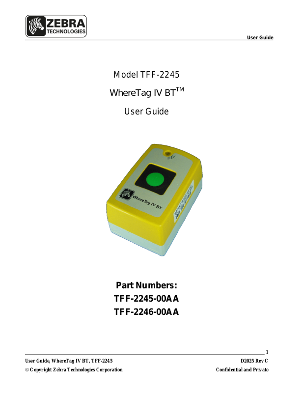 User Guide, WhereTag IV BT, TFF-2245 D2025 Rev C