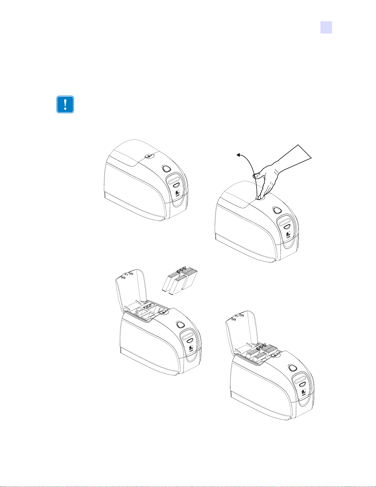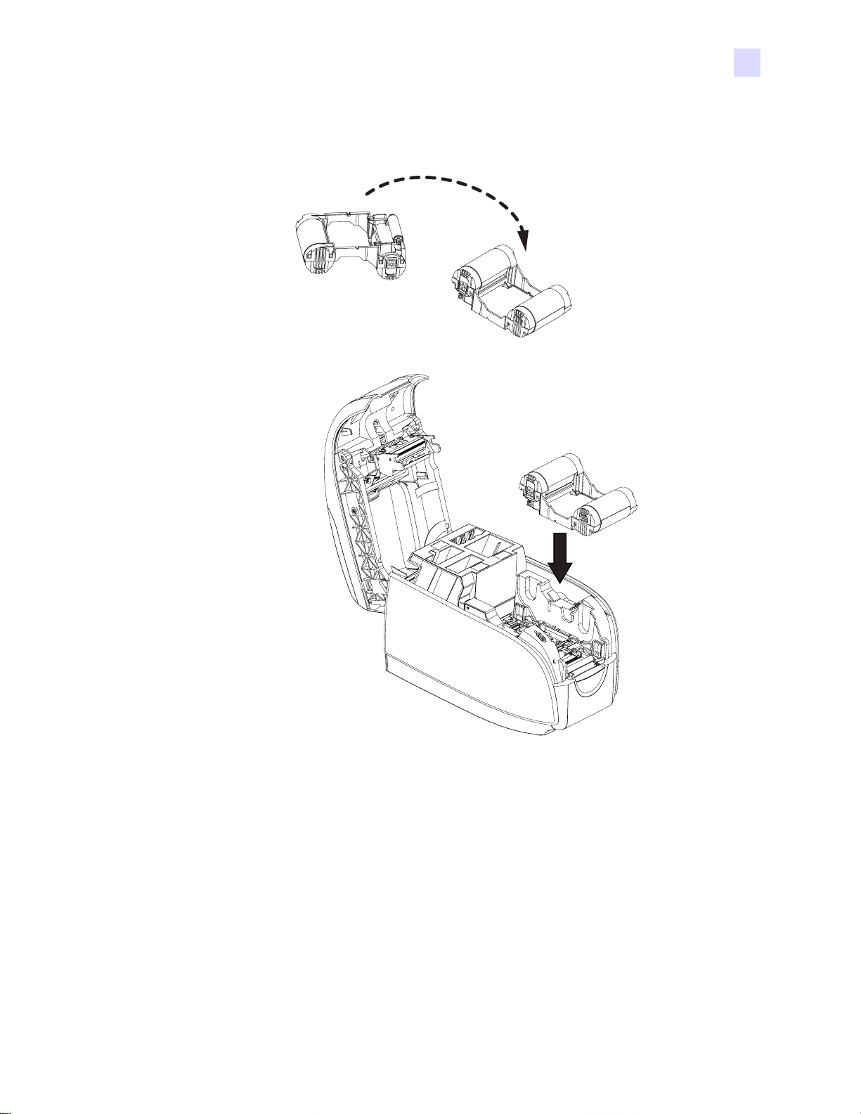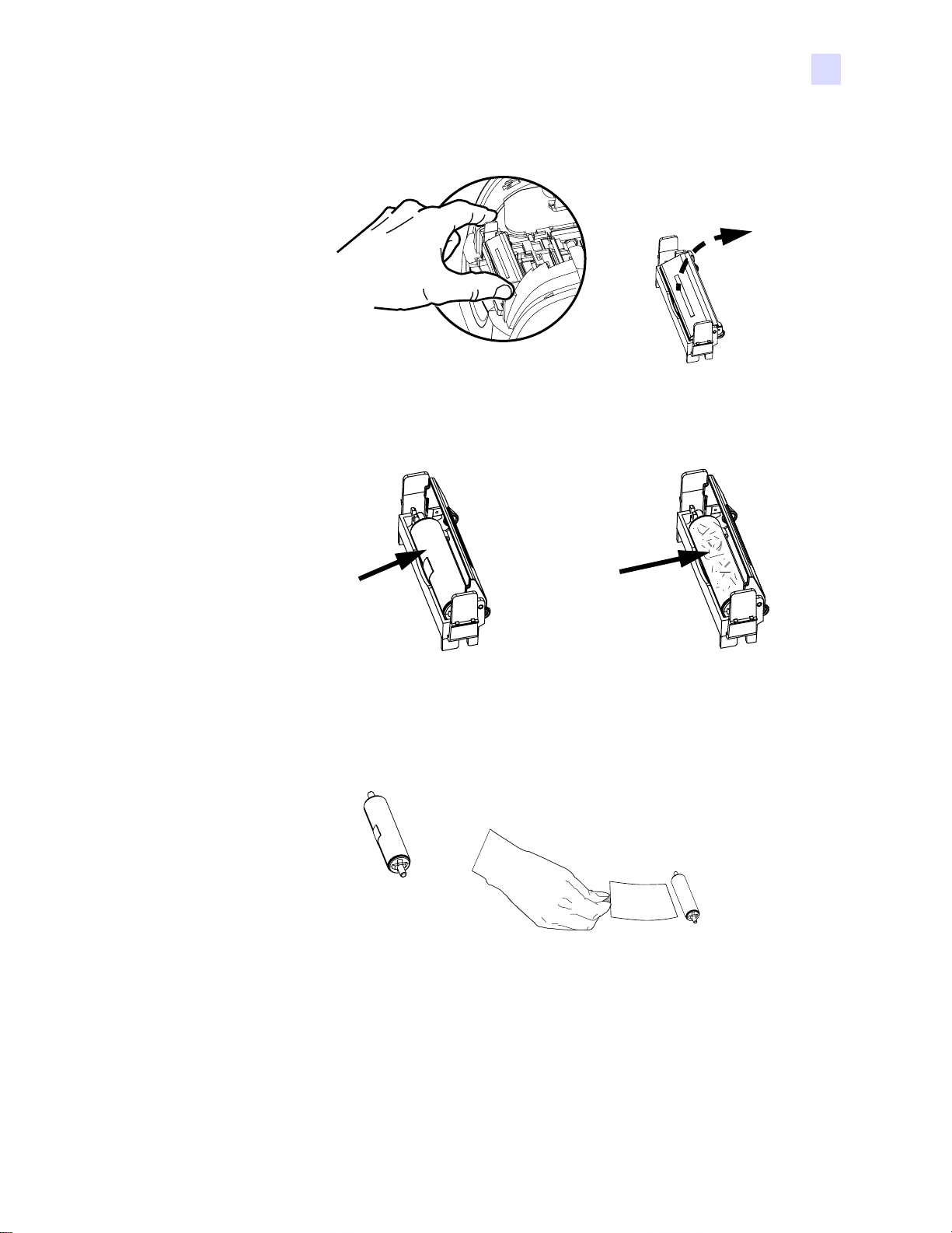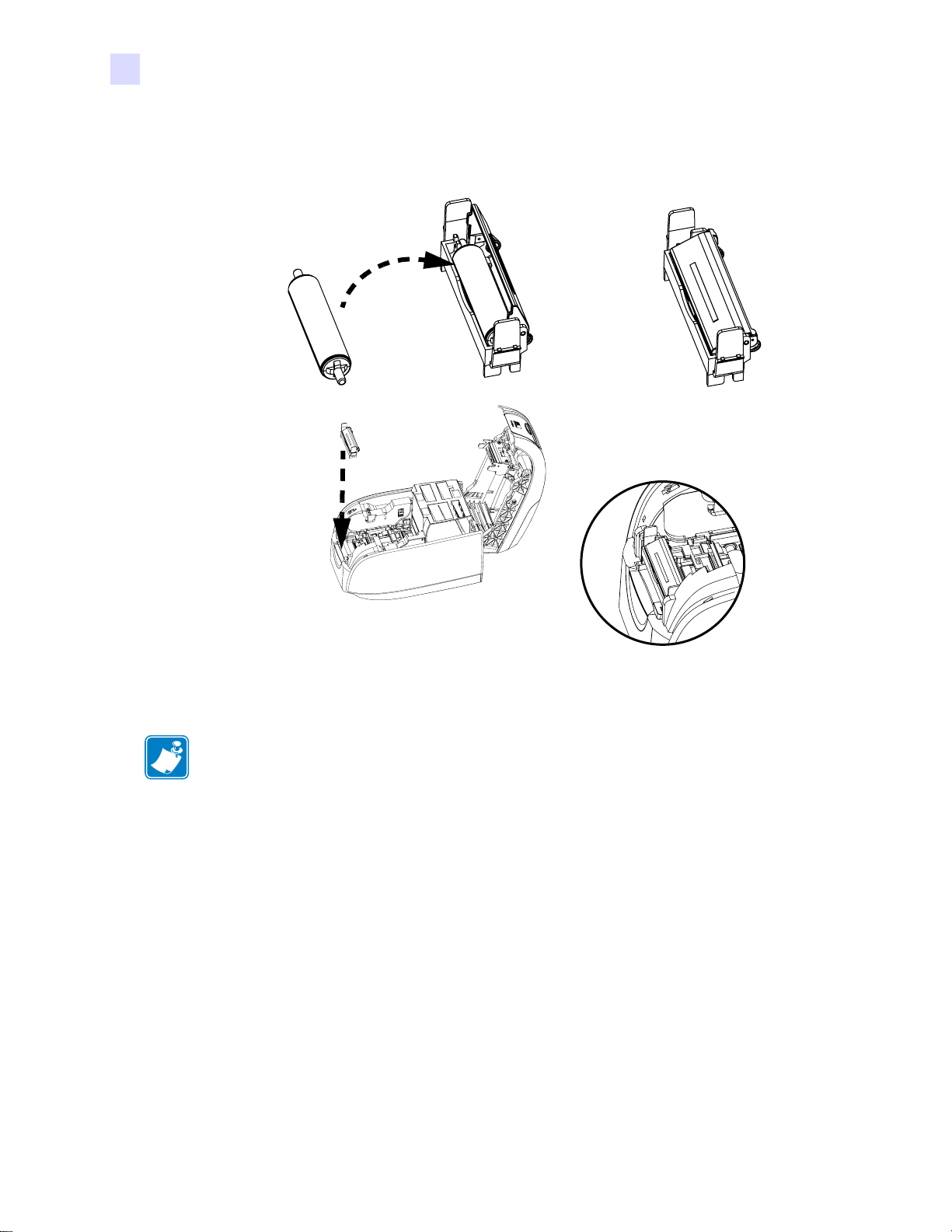Load-N-Go™ ribbon cartri dge with int egrated card cleaning roller for easy ribbon changing or