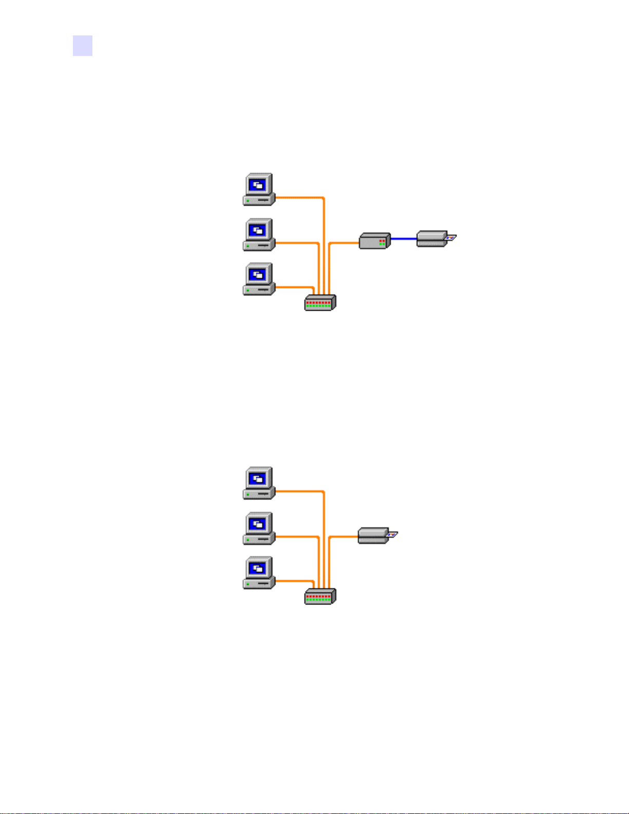 shared to other client computers. Client computers connect to the printer ov er the net wo r k