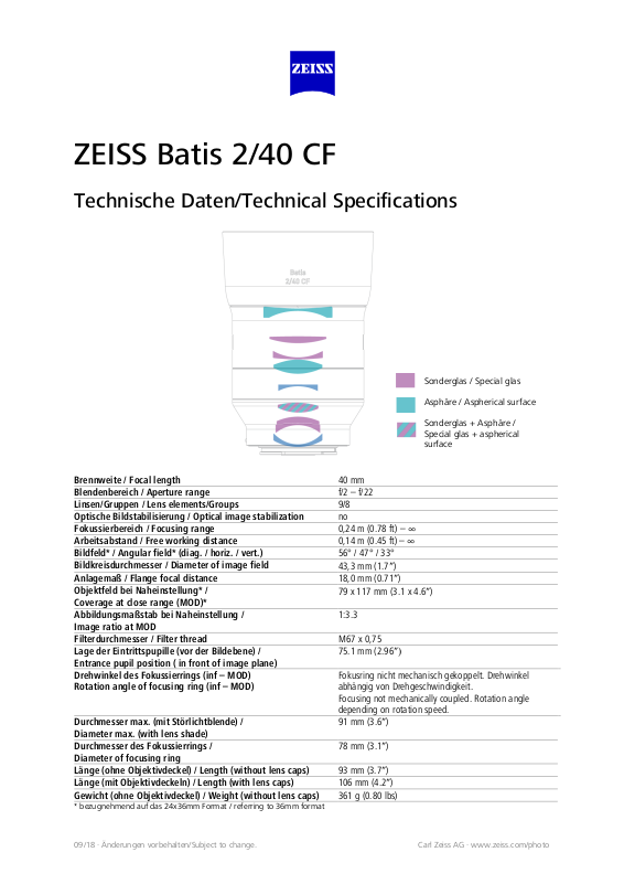 09/18 · Änderungen vorbehalten/Subject to change. Carl Zeiss AG · www.zeiss.com/photo