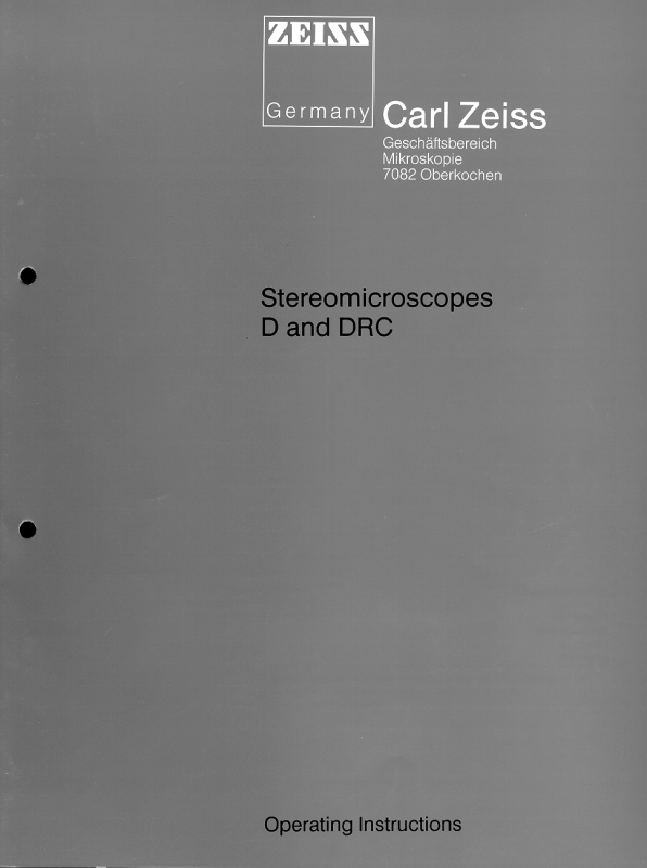 Zeiss STEREOMICROSCOPES D, STEREOMICROSCOPES DRC Operating Manual