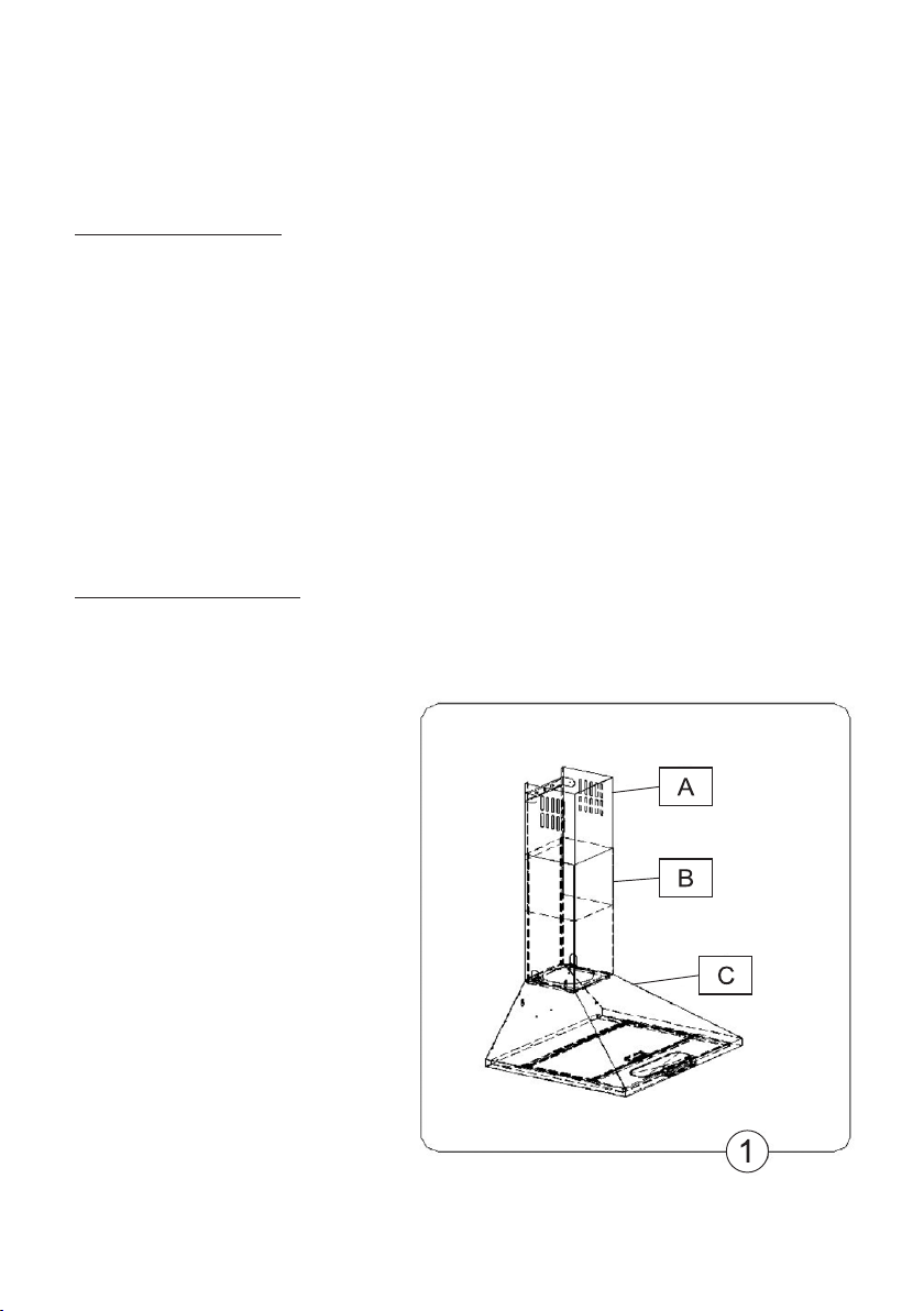 Obudowy okapu C wyposażonej w światła i zespół wentylatora. ●