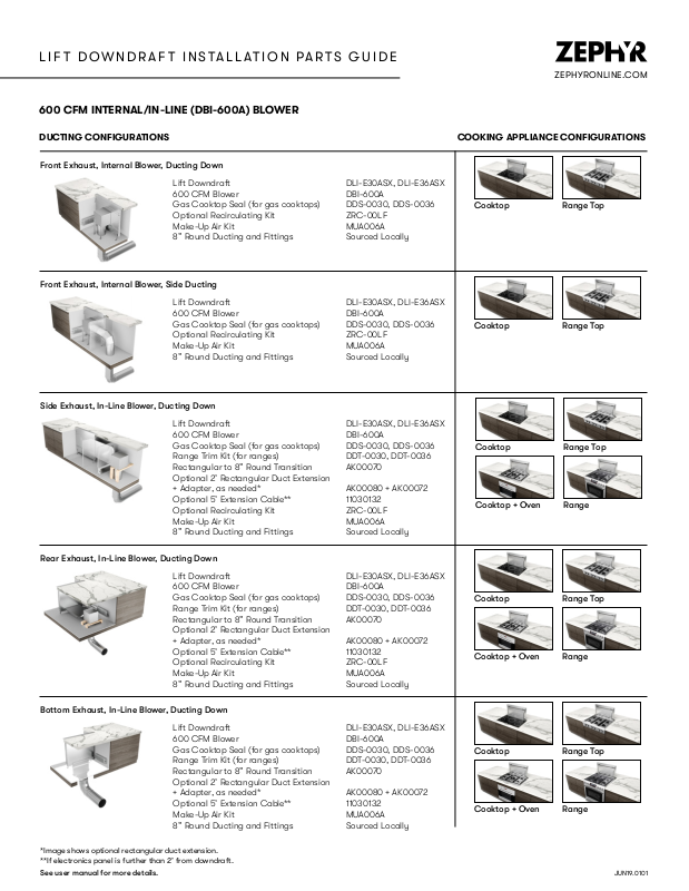 LIFT DOWNDRAFT INSTALLATION PARTS GUIDE
