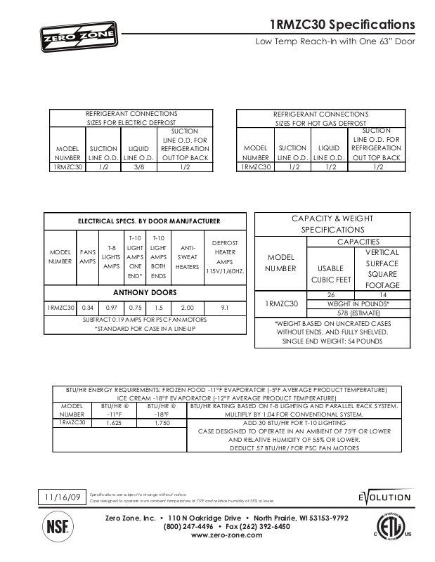 Zero Zone, Inc. • 110 N Oakridge Drive • North Prairie, WI 53153-9792