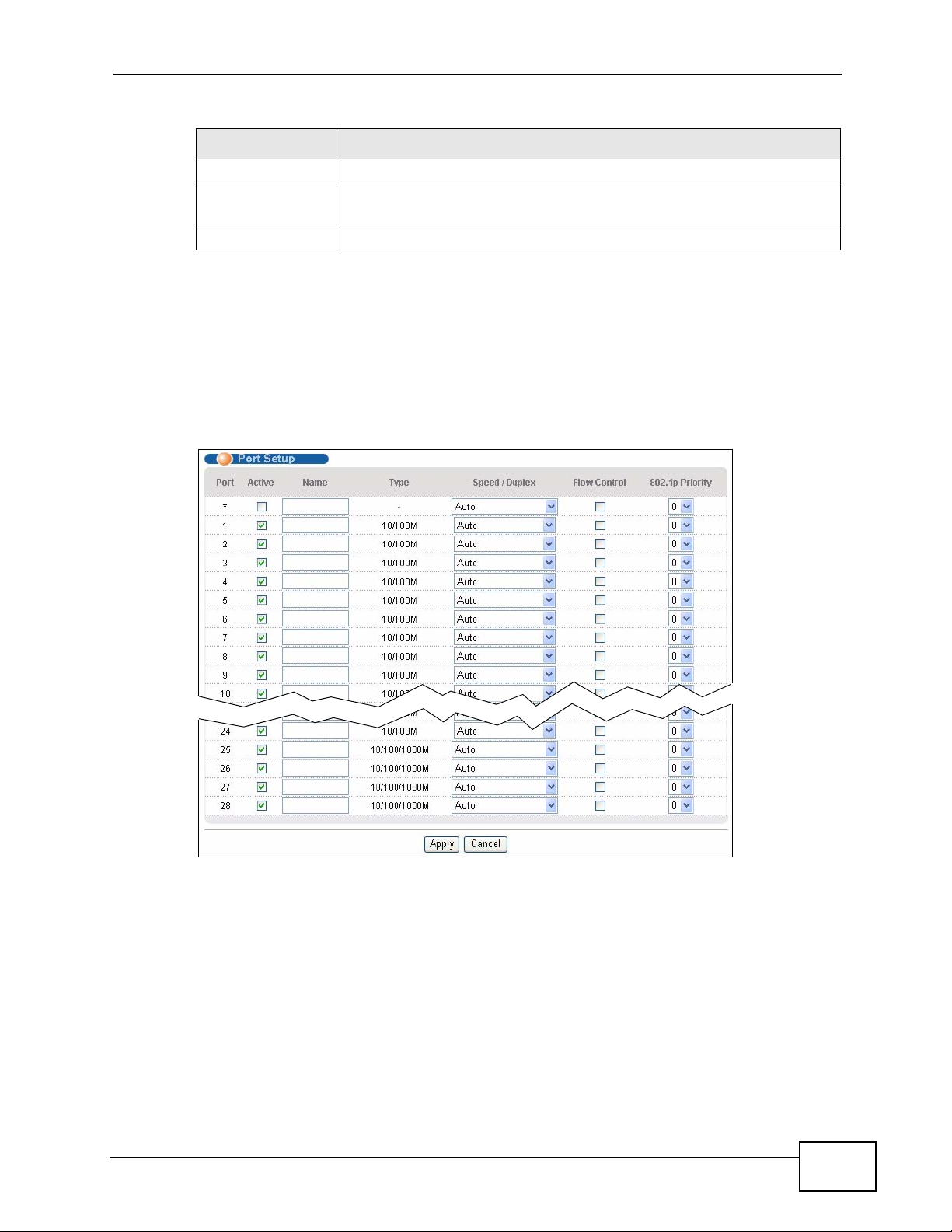 Note: Changes in this row are copied to all the port s as soon as yo u