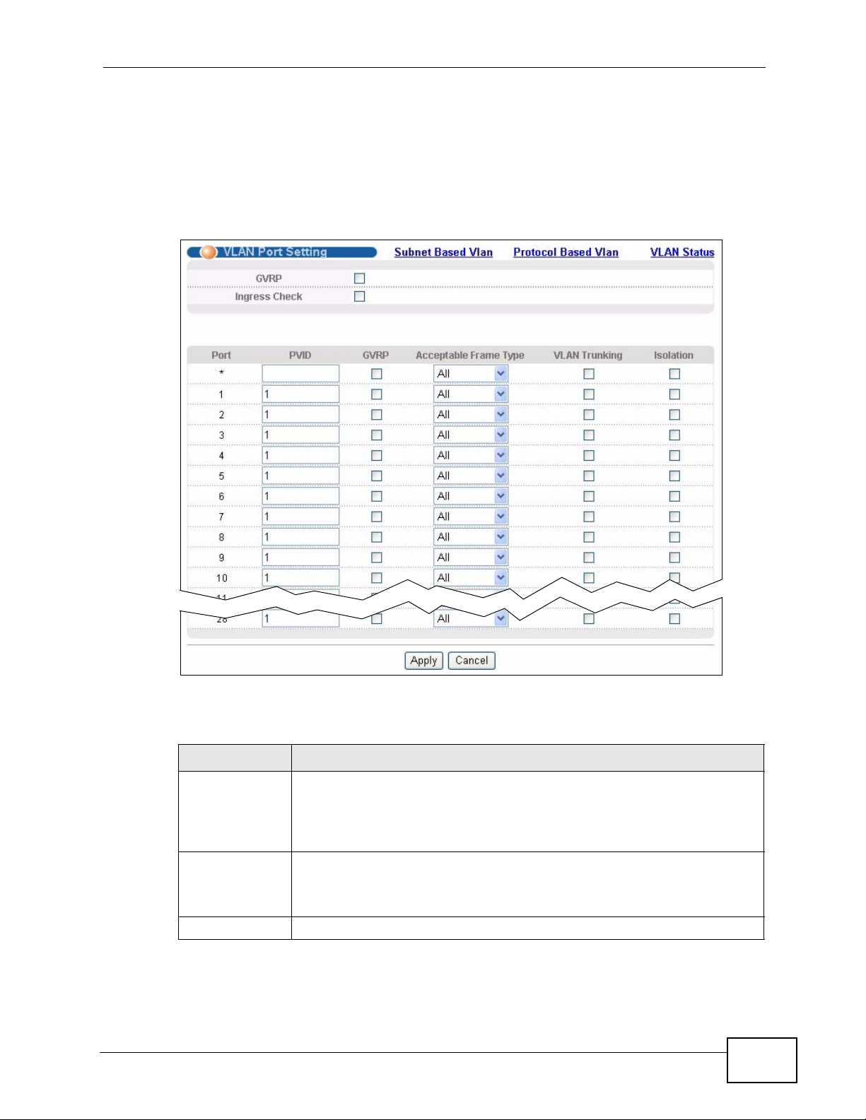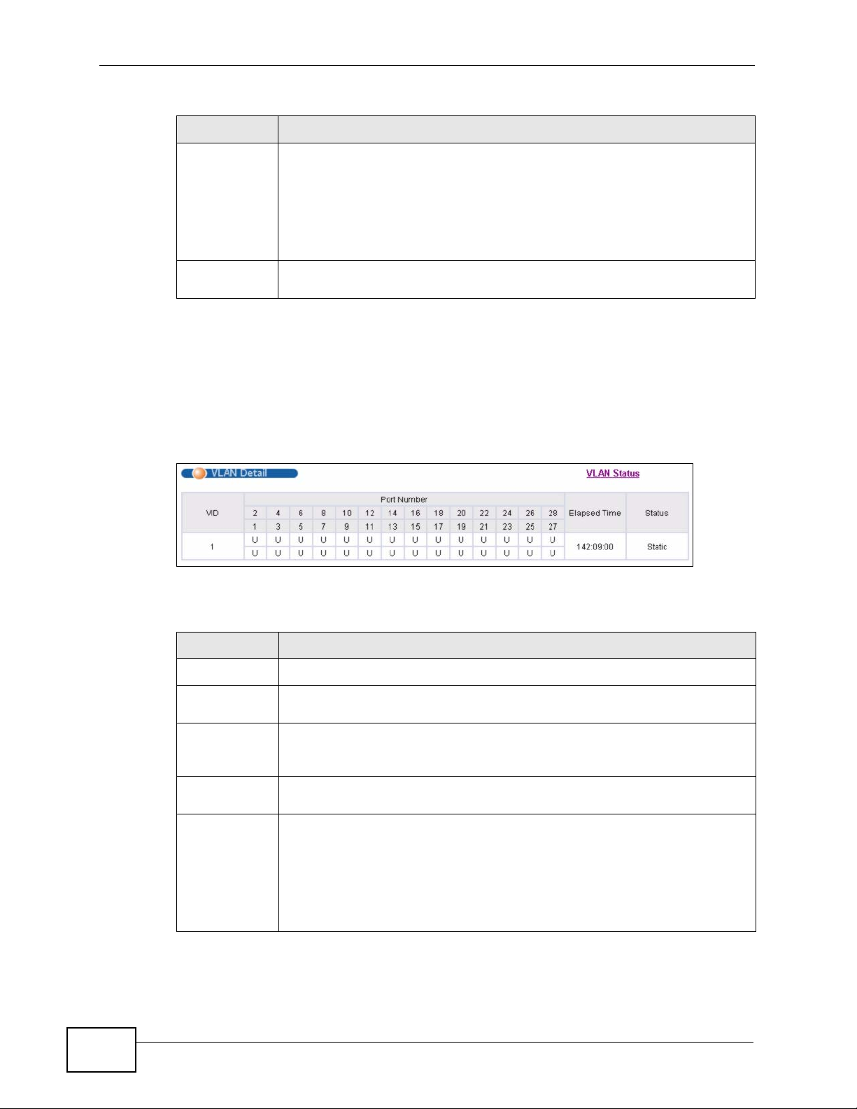Table 14 Advanced Application > VLAN: VLAN Status (continued)
